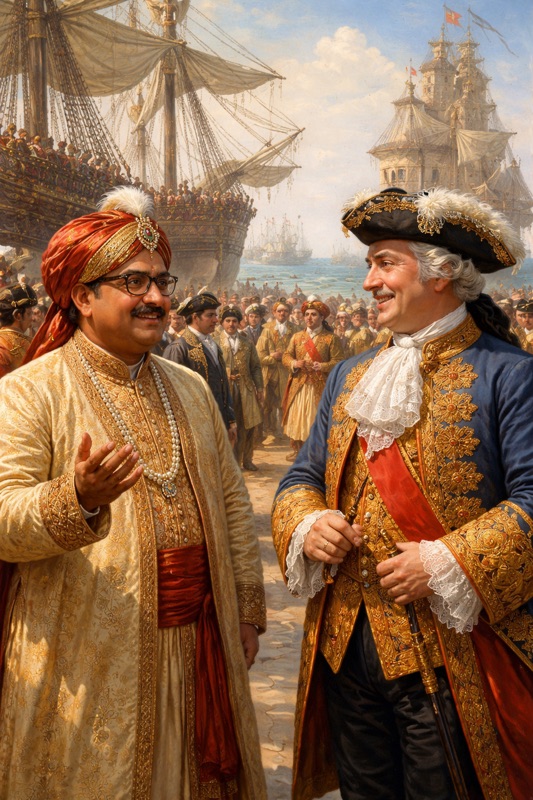 ஒரு வழியாக அவர் கிளம்பும் நாள் வந்தது. கப்பல் தளத்திற்குநாடே திரண்டு வந்து அவரை வழியனுப்பியது. எங்கே அவர்கிளம்பாமல் இருந்துவிடுவாரோ என்ற பீதி மக்கள் முகத்தில்தெரிந்தது. கப்பல் கிளம்ப மக்களும் மன்னரும் விட்ட பெருமூச்சு 100 நாட்டிக்கல் மைல் தூரம் கப்பலை கடலுக்குள்தள்ளியது.