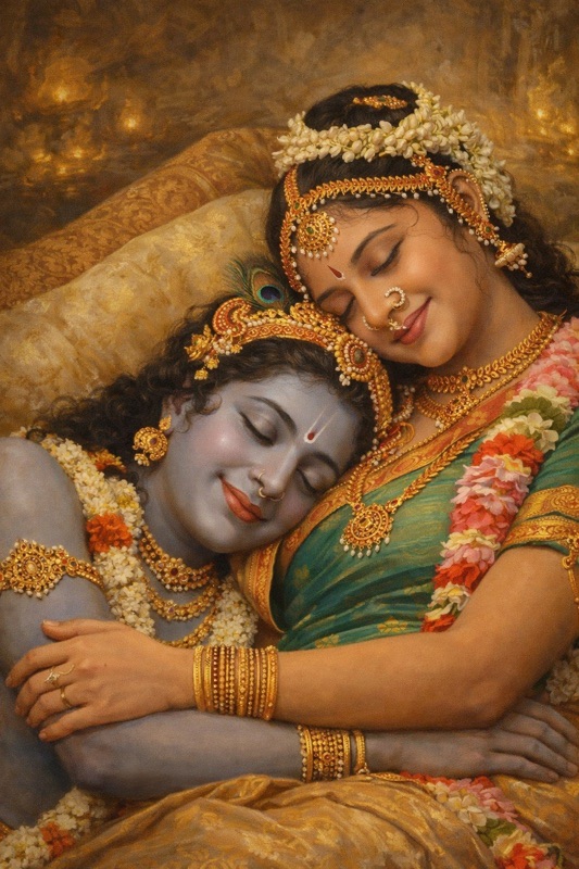 அப்படித் தூங்குவது போல தூங்கினால் ஆண்டாள் நம்மை அழகுத் தமிழில் பாடி எழுப்புவார் என்று எண்ணி கூட பலர் தூங்கியிருக்கலாம். இன்றைய தினம் நப்பின்னையையும் அவளோடு ஆனந்தமாக உறங்கிக் கிடக்கும் கண்ணனையும் எழுப்புகிறார். அவர்கள் தூங்கும் அறையை பாருங்கள்..