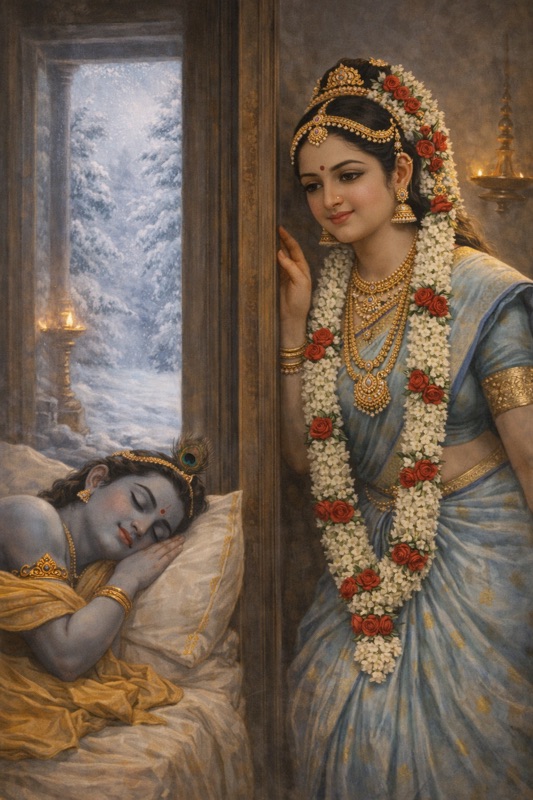 இன்னமும் தூங்குவது போல நடிக்கிறான் என்றே நினைக்கிறேன். படிக்கும் நமக்கே இவ்வளவு இன்பம் என்றால் பாடு பொருளான அவனுக்கு.! நிஜத்தில் கண்ணனை பாசக் கயிறால் கட்டிப் போட்டது யசோதை என்றால் பாசுரக் கயிறால் கட்டிப் போட்டது ஆண்டாளே..