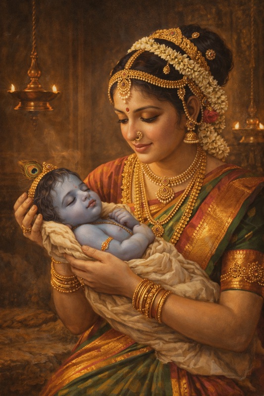 ஒருத்திக்கு பிறந்து யசோதை என்னும் ஒருத்தியிடம் ஒளிக்கப்பட்டு வளர்ந்தஒப்பில்லாதவன். கண்ணனின் தாய்மாமன் கம்சன் தனது தங்கையின்குழந்தையால் உனக்கு மரணம் வரும் என்றறிந்து அவளுக்கு பிறந்தகுழந்தைகளை எல்லாம் கொல்ல இவன் மட்டும் அங்கிருந்து தப்பியவன். கண்ணன் இறக்கவில்லை அவன்..